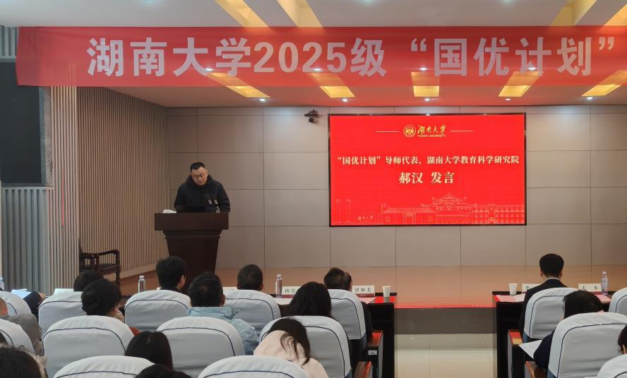 湖南大学研究生院副院长李建指出,“国优计划”是教育部加强教师队伍建设的战略举措,我校作为试点高校之一,已在全国“国优计划”工作推进会上分享典型经验。他希望同学们弘扬教育家精神,传承“传道济民、经世致用”传统;在“三导师”联合指导下练就过硬本领;积极投身基础教育,以“一棵树摇动另一棵树”的信念,成长为领军人才。