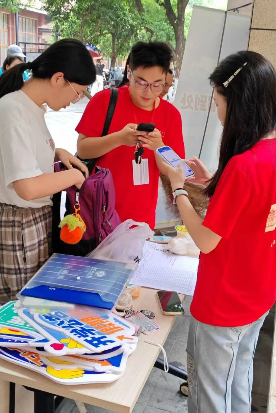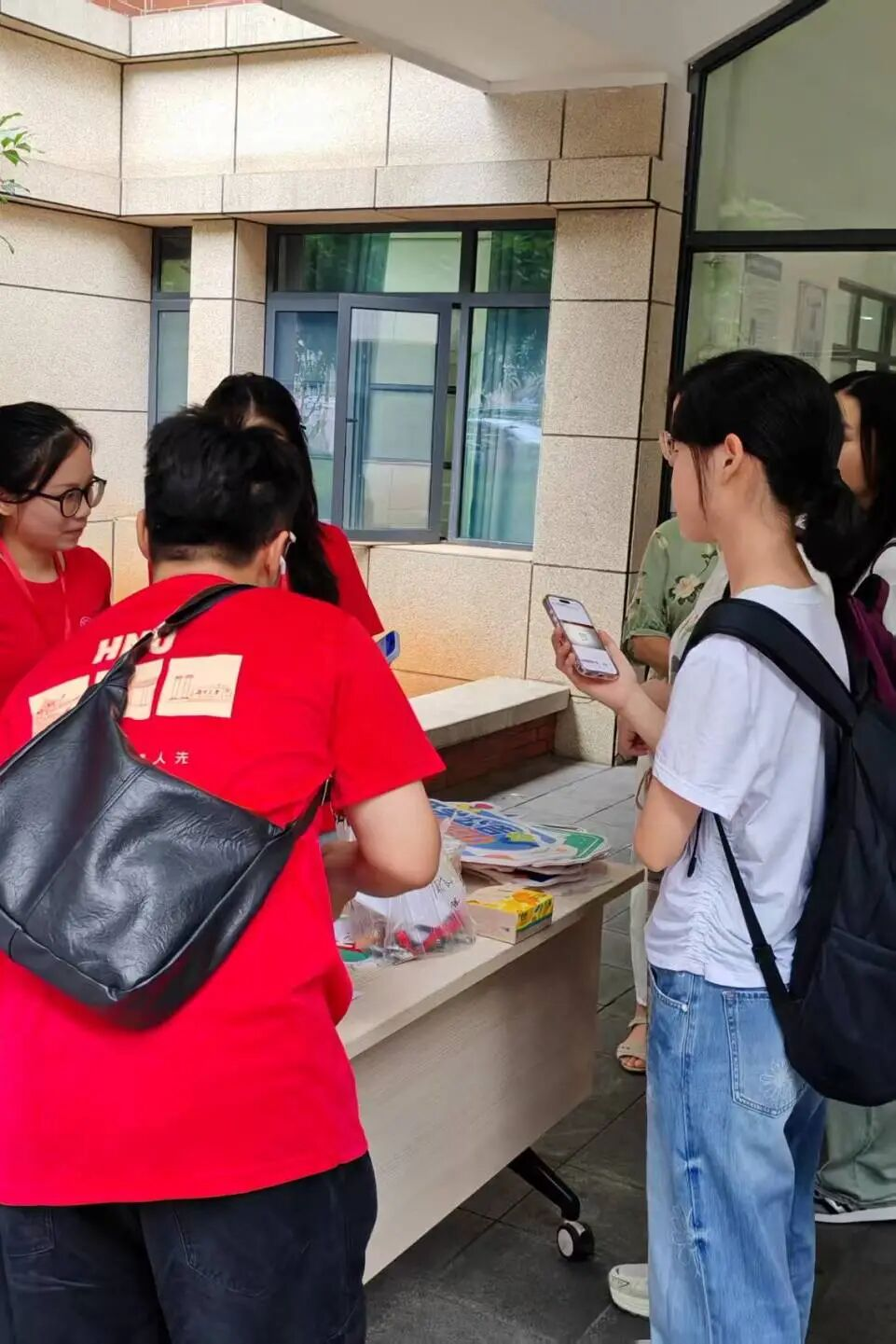在教科院迎新点,志愿者们身着教科红,成为北校里一道亮丽的风景。他们早早到位,耐心解答报到相关事宜,主动帮助新生搬运行李,用真诚的服务传递教科院的第一份温暖。