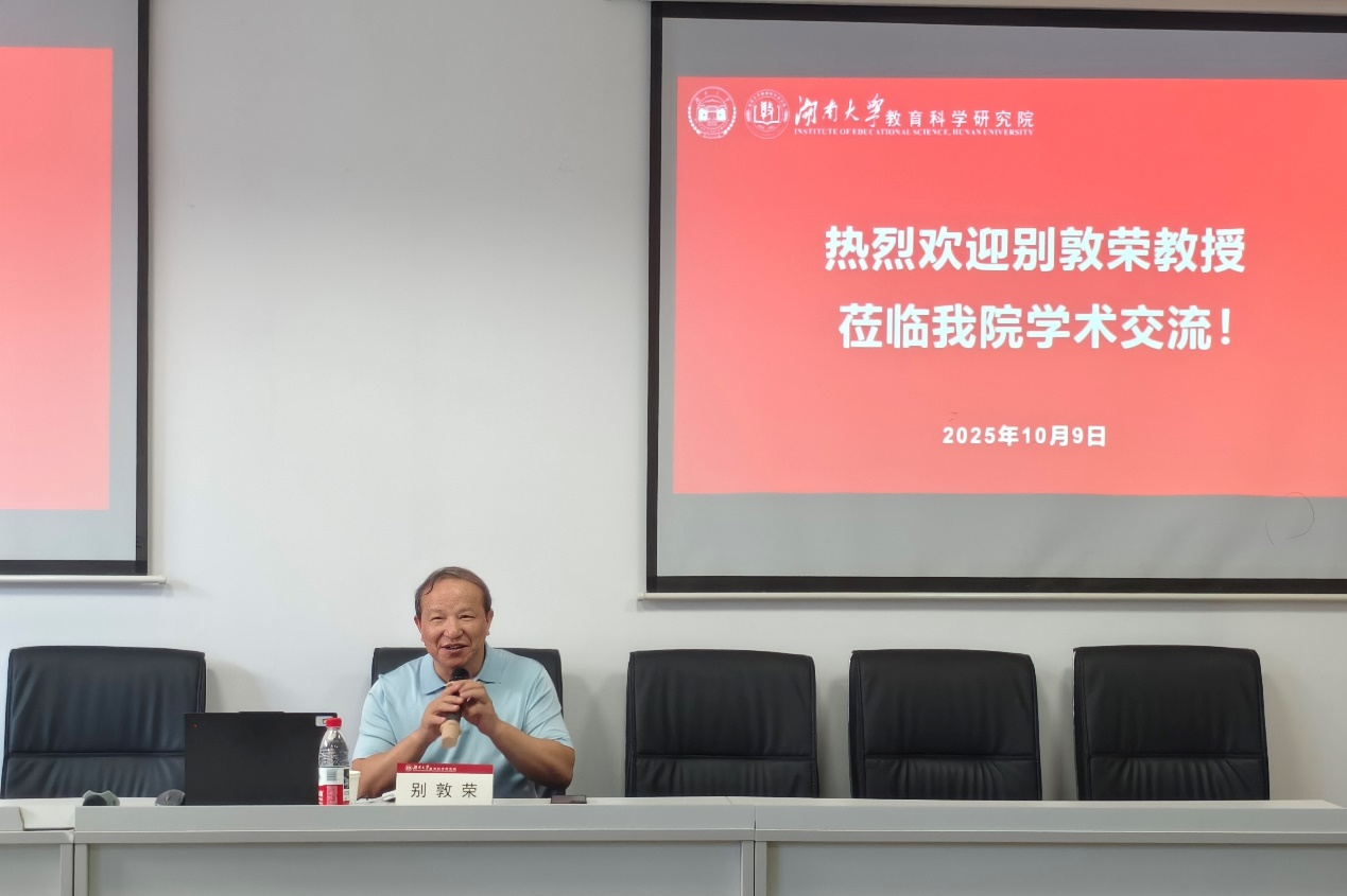 2025年10月9日下午,教育科学研究院“云麓教育论坛”第176期在银杏楼102报告厅举行。本次论坛特邀厦门大学教育研究院院长别敦荣教授,以“大学高质量发展与教学评价改革”为题作专题报告。此次讲座由教科院副院长朱恬恬主持,广大师生积极参会,现场交流热烈。